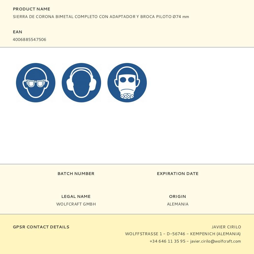 SIERRA DE CORONA BIMETAL COMPLETO CON ADAPTADOR Y BROCA PILOTO Ø74 mm