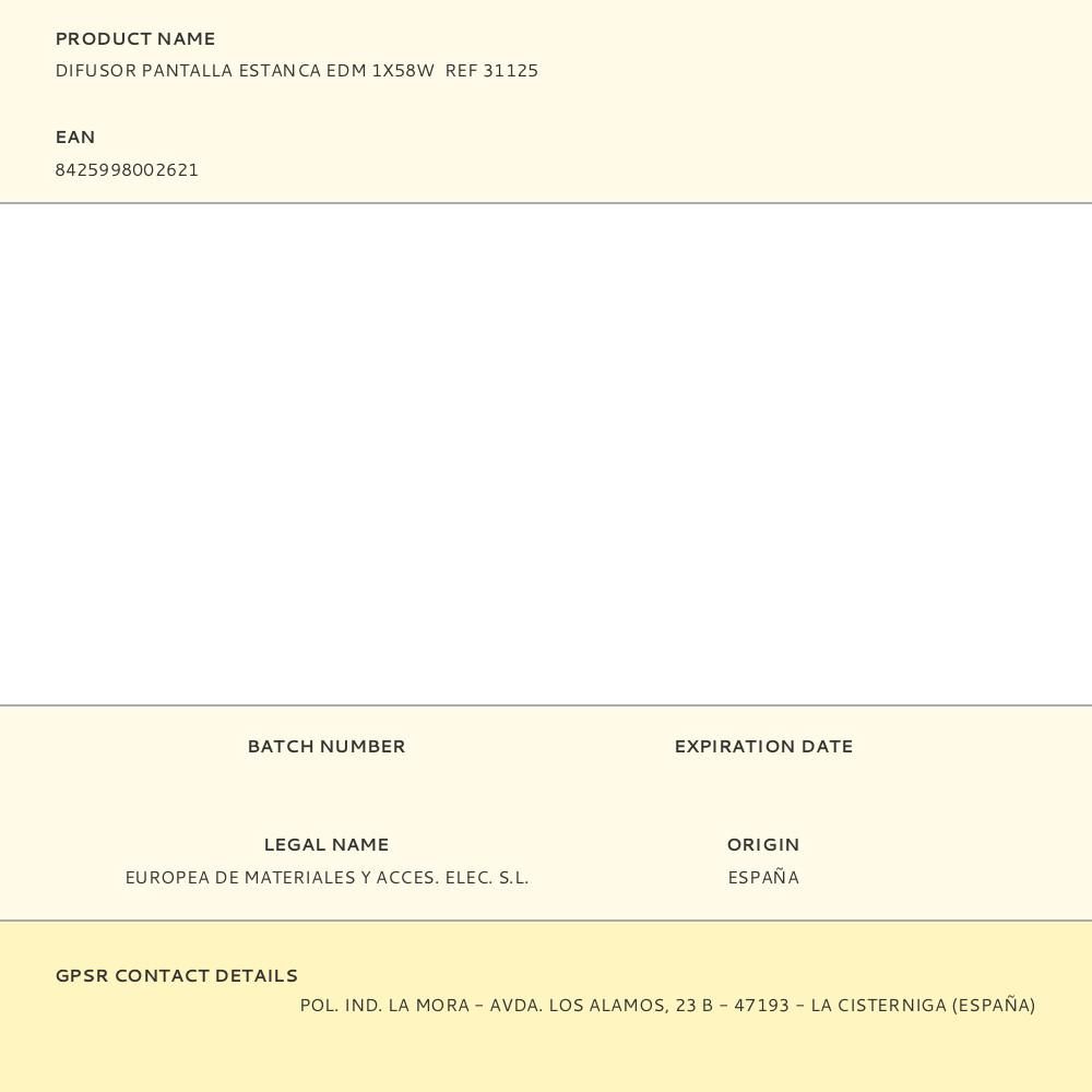 DIFUSOR PANTALLA ESTANCA EDM 1X58W REF 31125