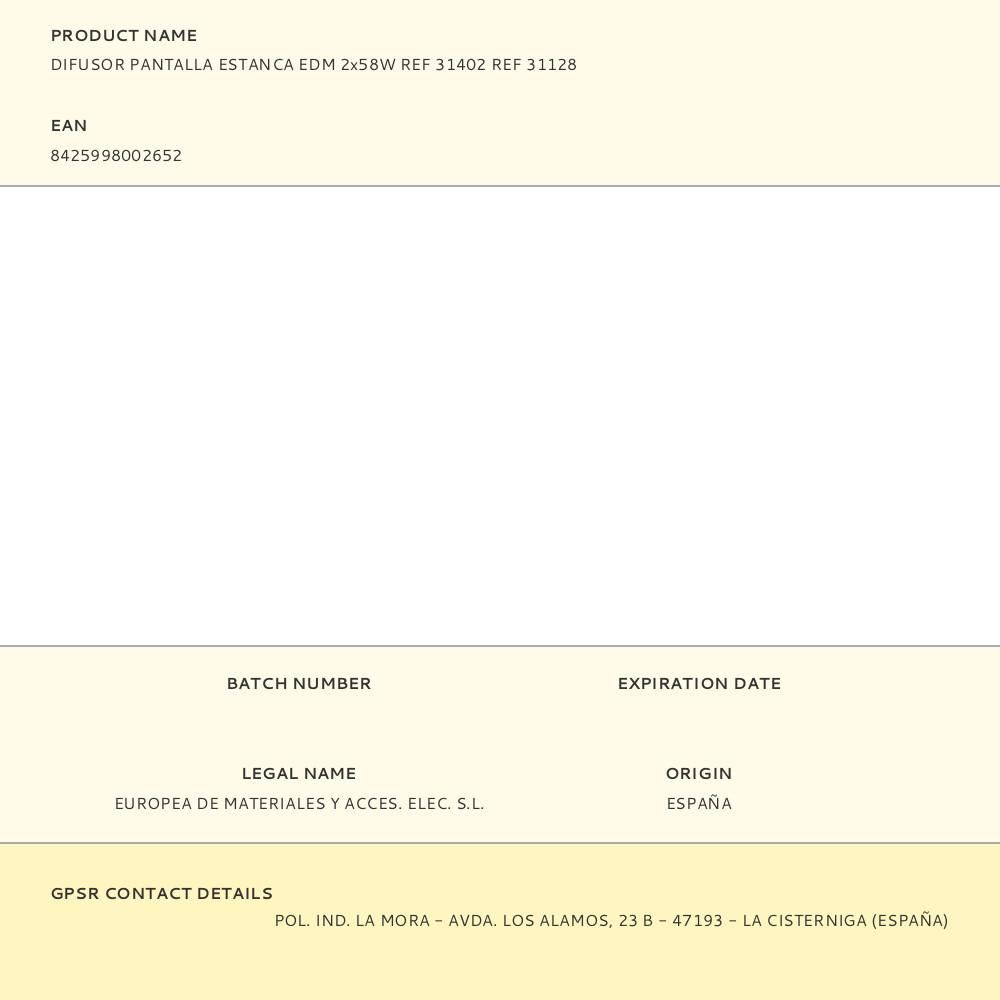 DIFUSOR PANTALLA ESTANCA EDM 2x58W REF 31402 REF 31128