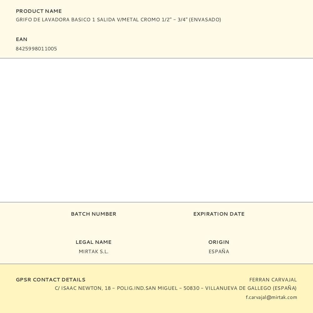GRIFO DE LAVADORA BASICO 1 SALIDA V/METAL CROMO 1/2" - 3/4" (ENVASADO)
