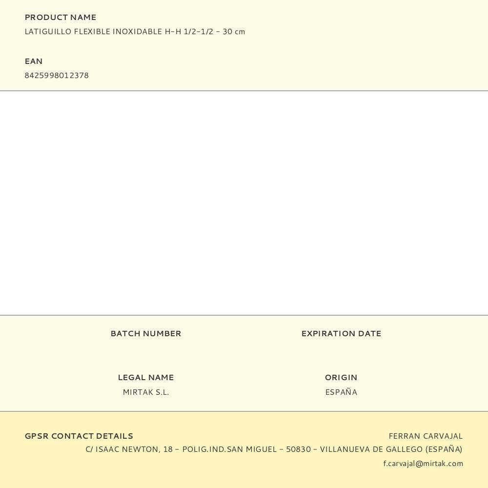 LATIGUILLO FLEXIBLE INOXIDABLE H-H 1/2-1/2 - 30 cm