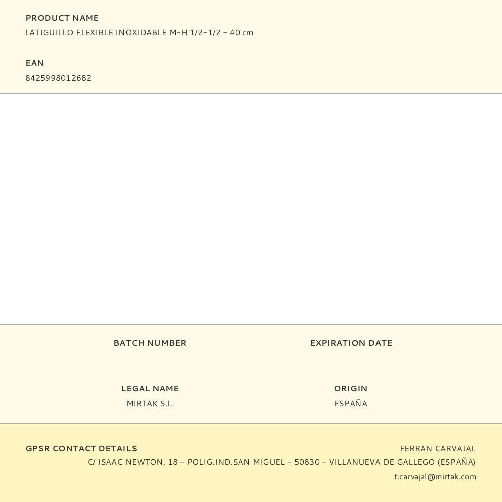 LATIGUILLO FLEXIBLE INOXIDABLE M-H 1/2-1/2 - 40 cm