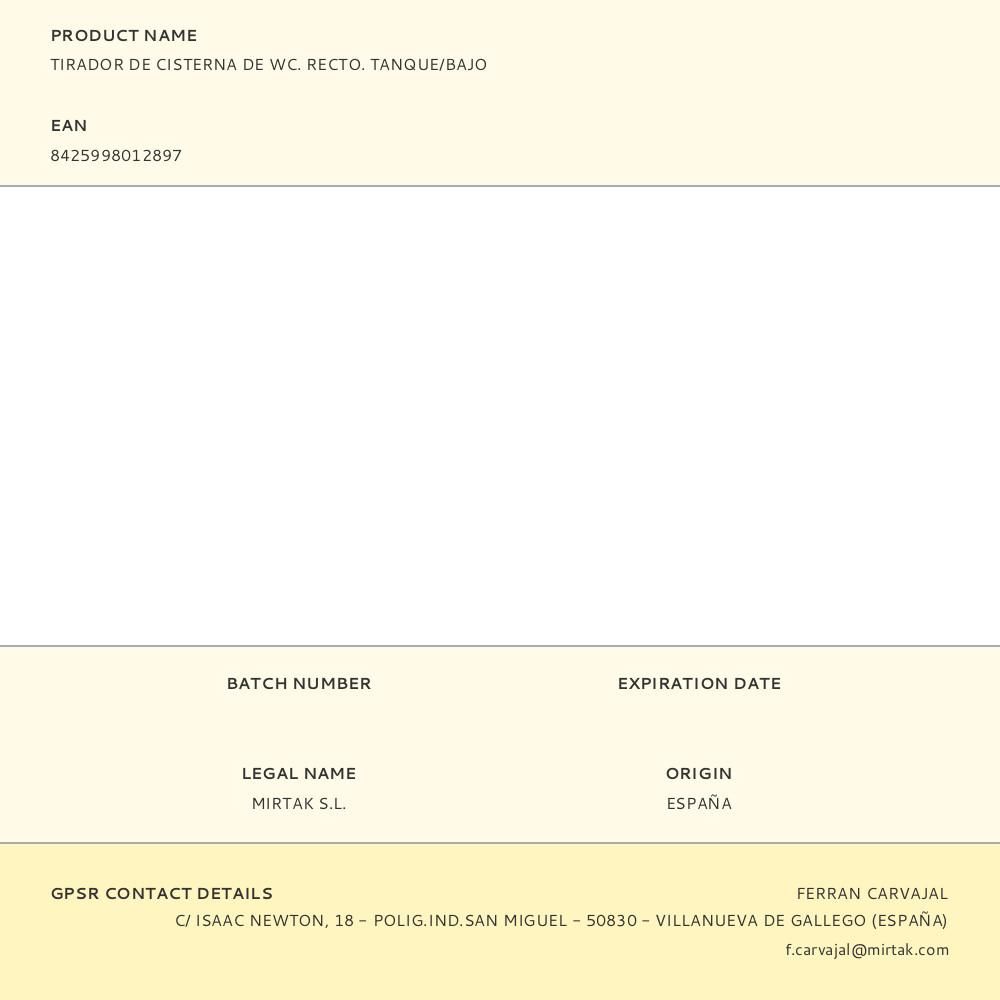 TIRADOR DE CISTERNA DE WC. RECTO. TANQUE/BAJO