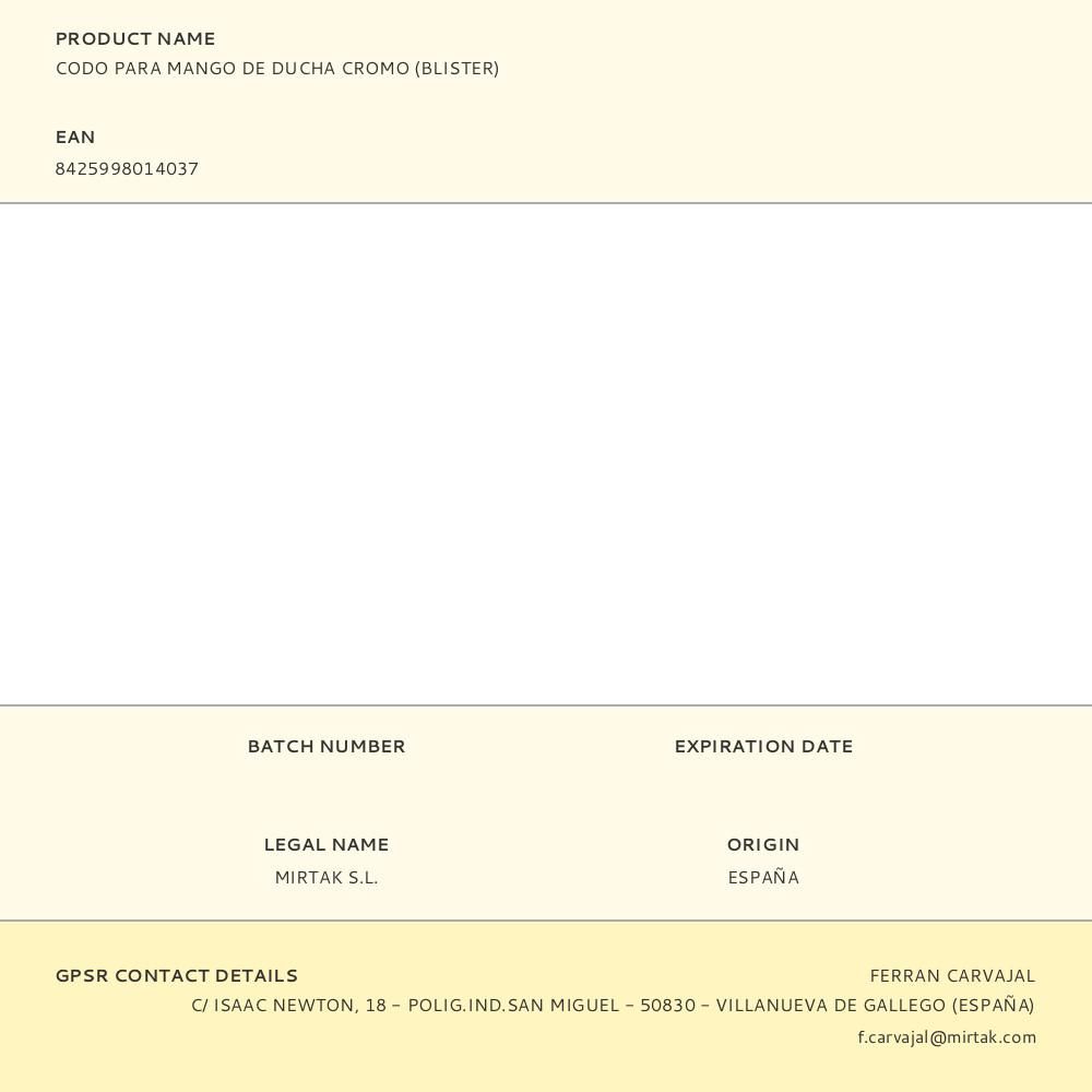 CODO PARA MANGO DE DUCHA. COLOR CROMO. DIMENSIONES: 5,5cm (largo) MATERIAL: ABS. EDM (BLISTER)