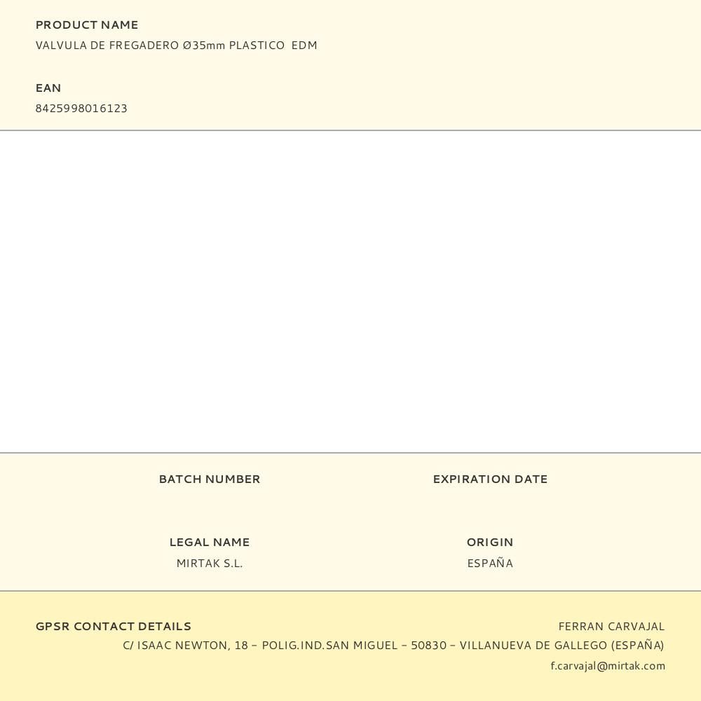 VALVULA DE FREGADERO Ø35mm PLASTICO EDM
