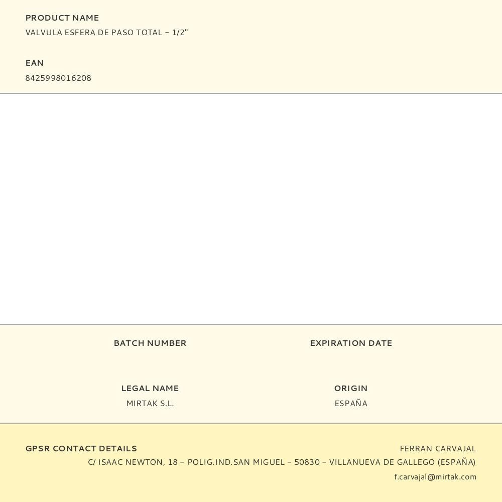 VALVULA ESFERA DE PASO TOTAL - 1/2