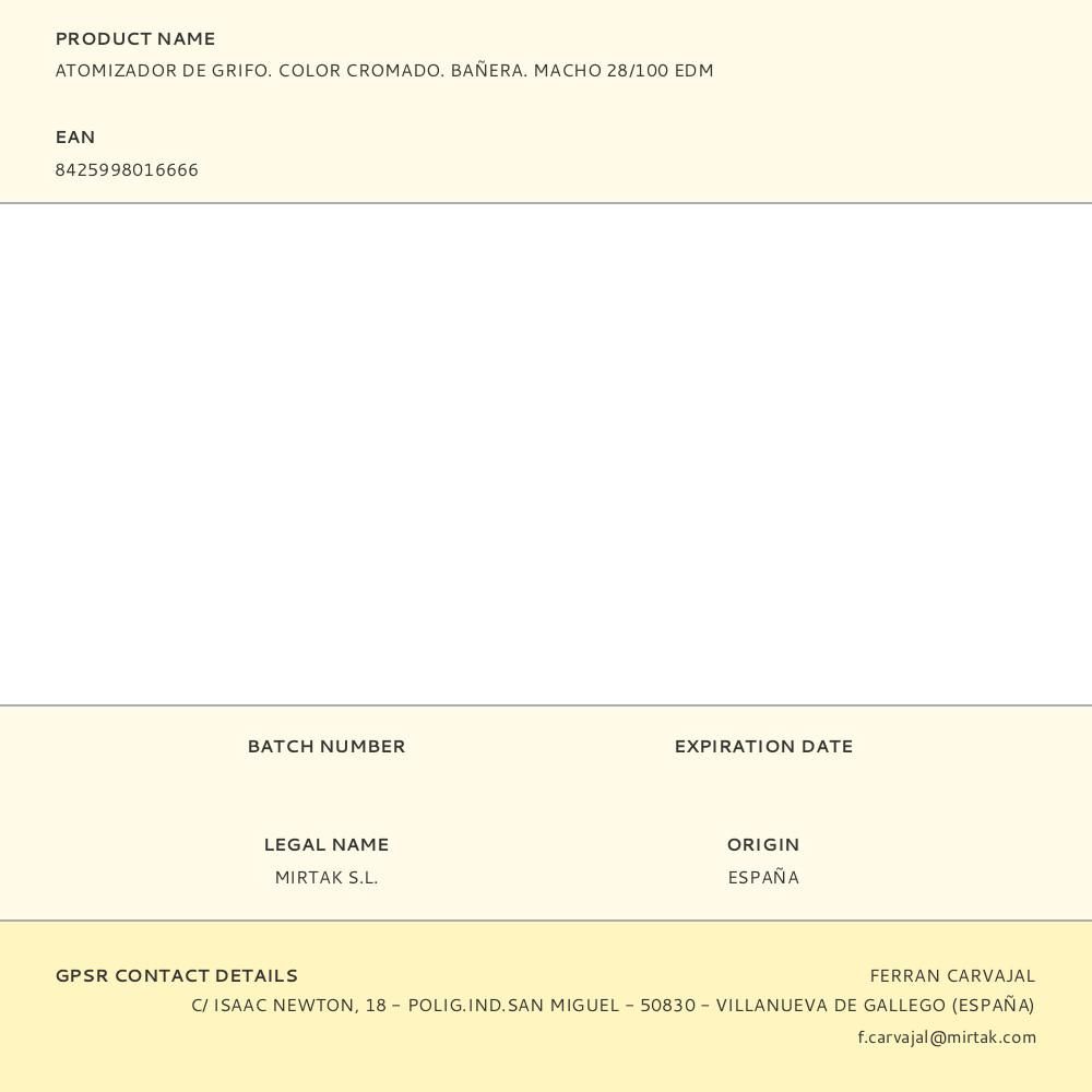 ATOMIZADOR DE GRIFO. COLOR CROMADO. BAÑERA. MACHO 28/100