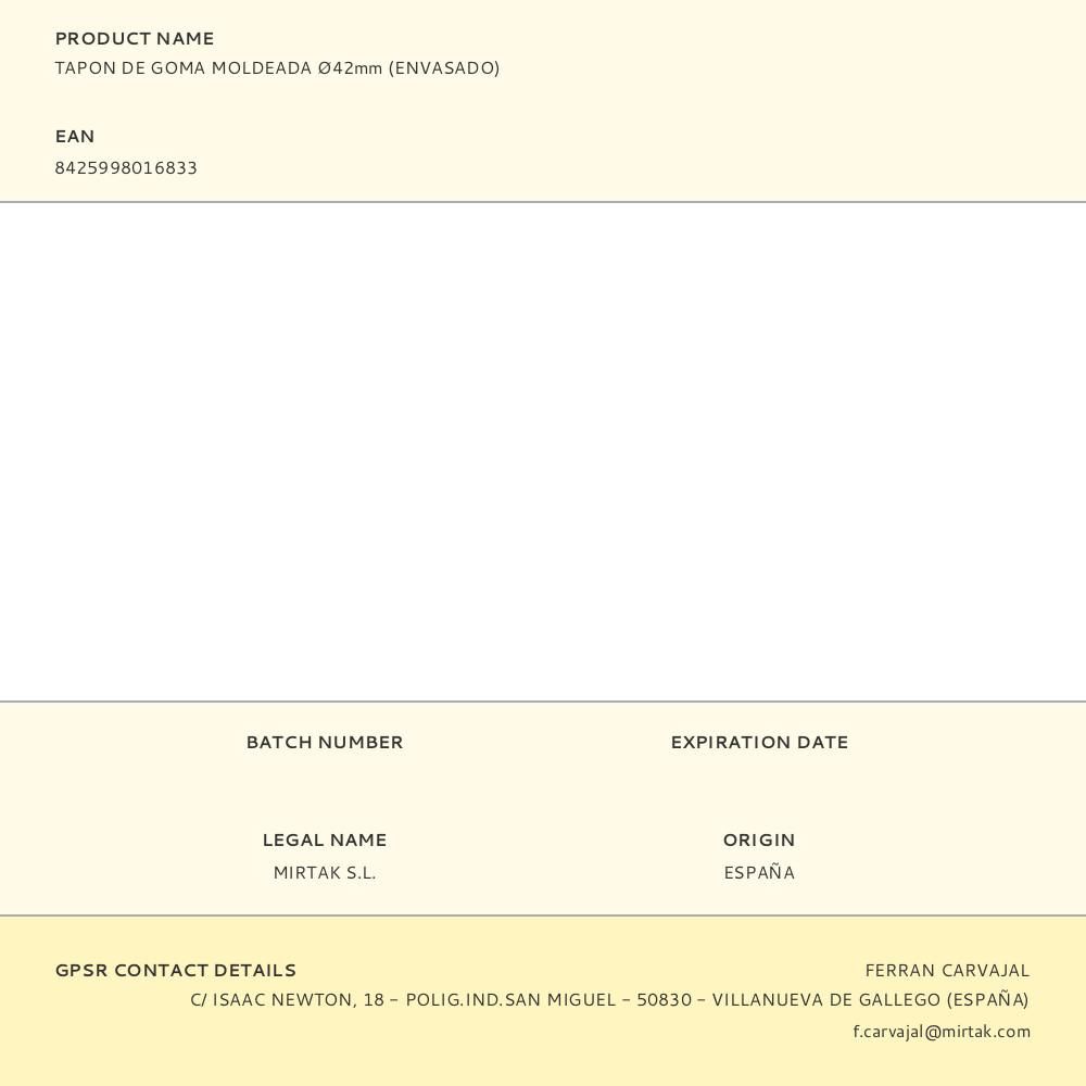 TAPON DE GOMA MOLDEADA Ø42mm (ENVASADO)