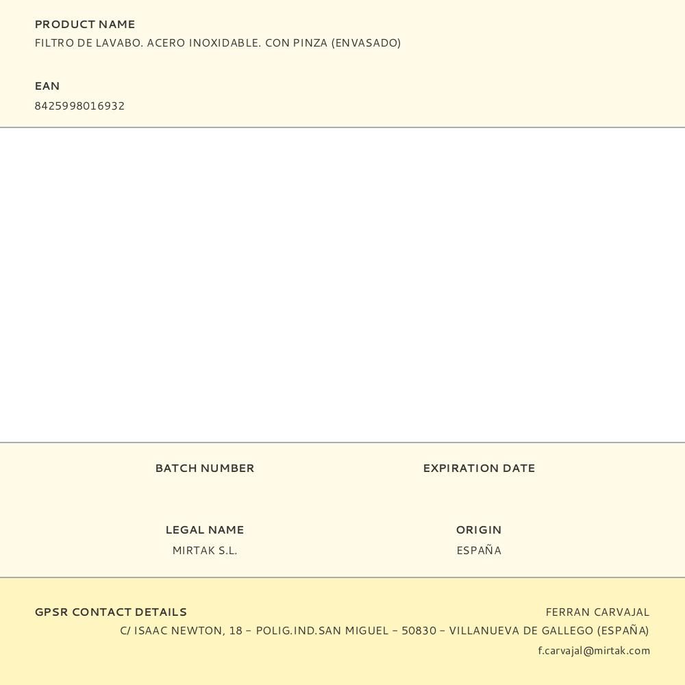 FILTRO DE LAVABO. ACERO INOXIDABLE. CON PINZA (ENVASADO)