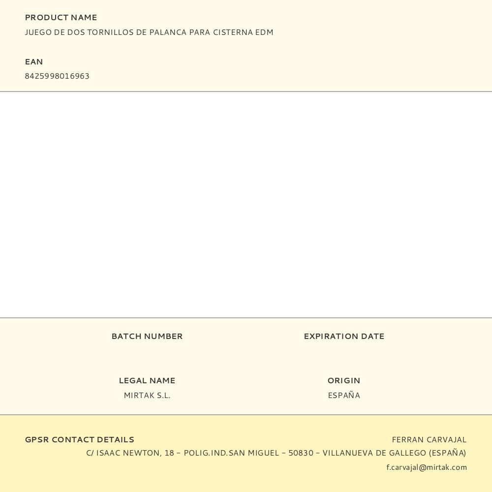 JUEGO DE DOS TORNILLOS DE PALANCA PARA CISTERNA EDM