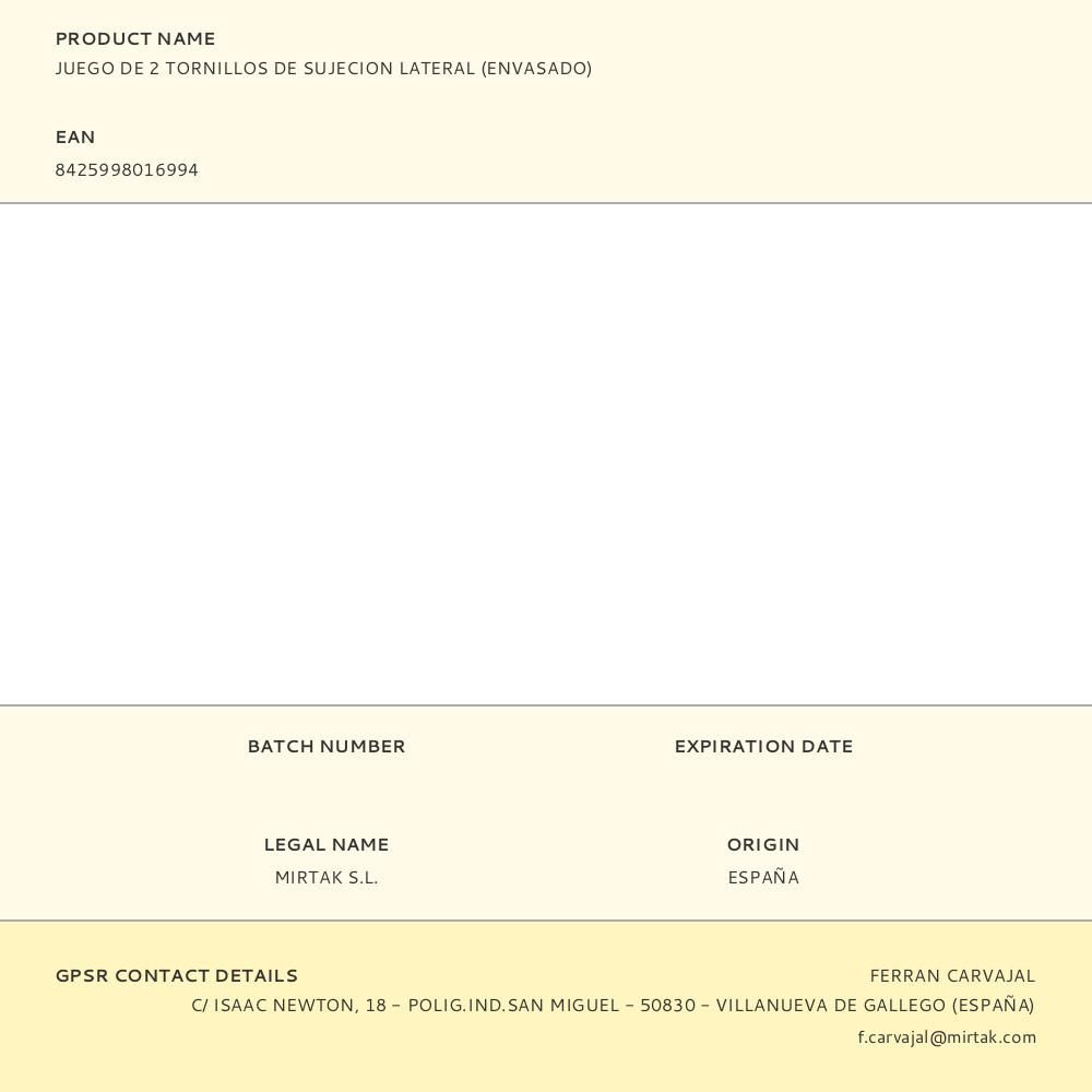JUEGO DE 2 TORNILLOS DE SUJECION LATERAL (ENVASADO)