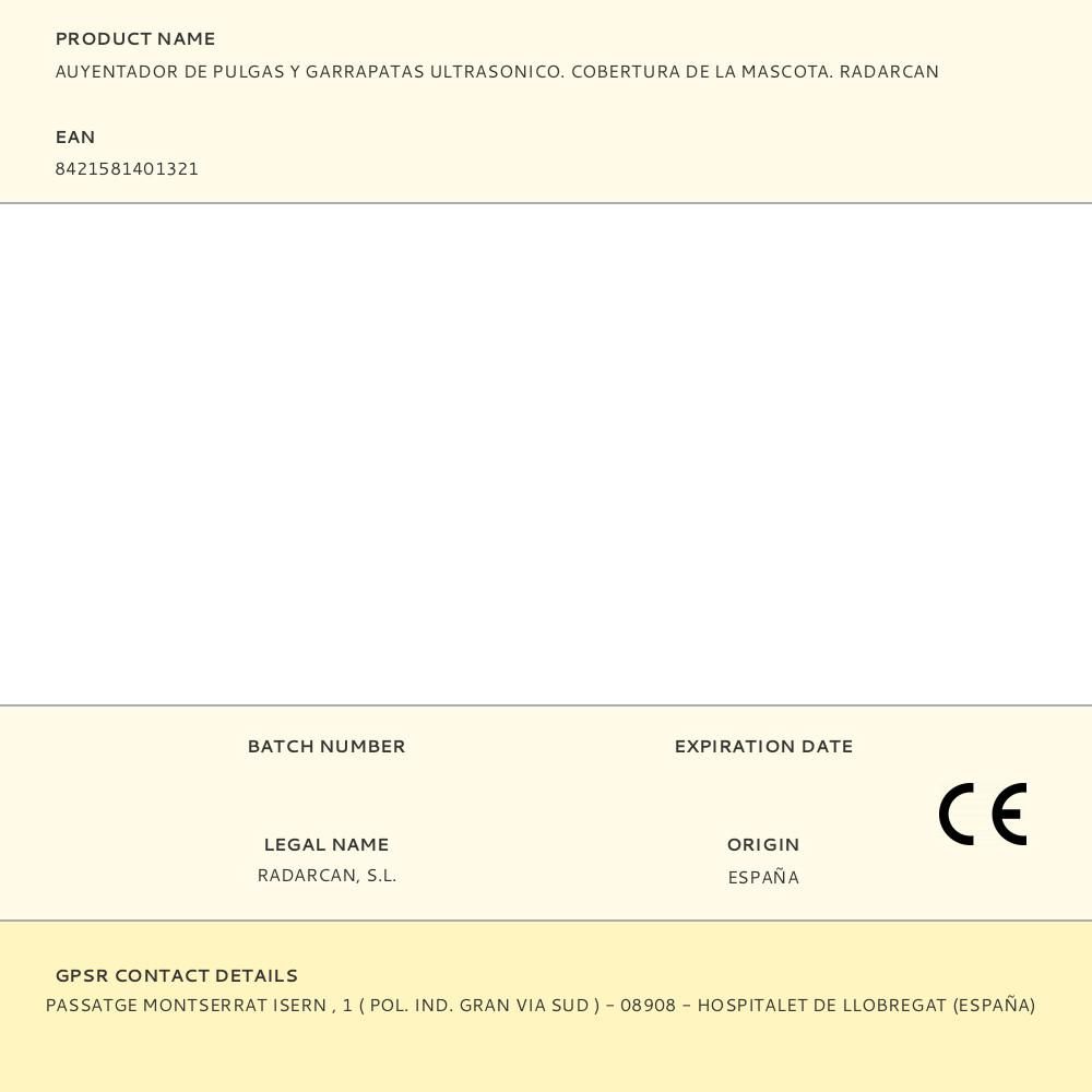 AHUYENTADOR ULTRASÓNICO DE PULGAS Y GARRAPATAS PARA COBERTURA DE LA MASCOTA