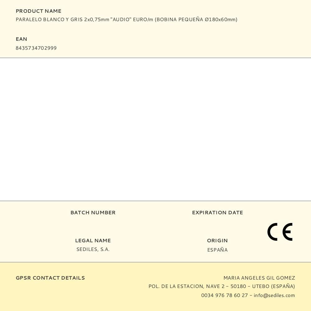 PARALELO BLANCO Y GRIS 2x0,75mm "AUDIO" EURO/m (BOBINA PEQUEÑA Ø180x60mm)