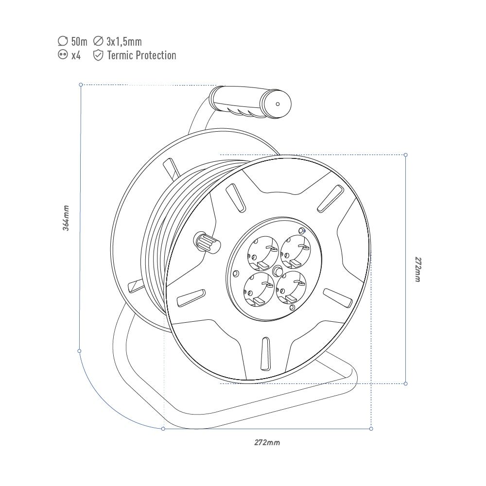 ENROLLACABLES 50 m 3 G 1,50 mm² 4 TOMAS BIPOLARES CON T/TL CON PROTECTOR TÉRMICO