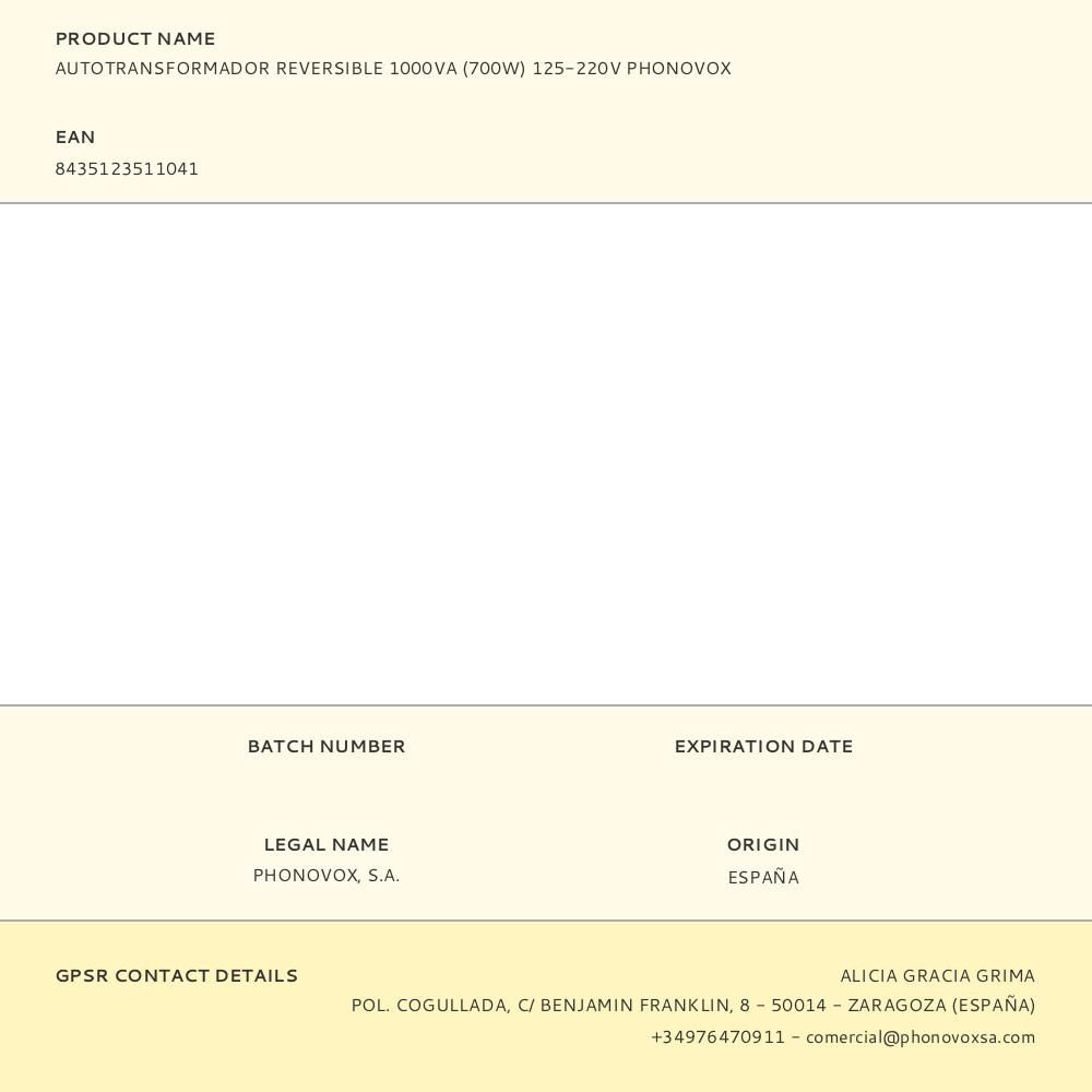 AUTOTRANSFORMADOR REVERSIBLE 1000VA (700W) 125-220V PHONOVOX
