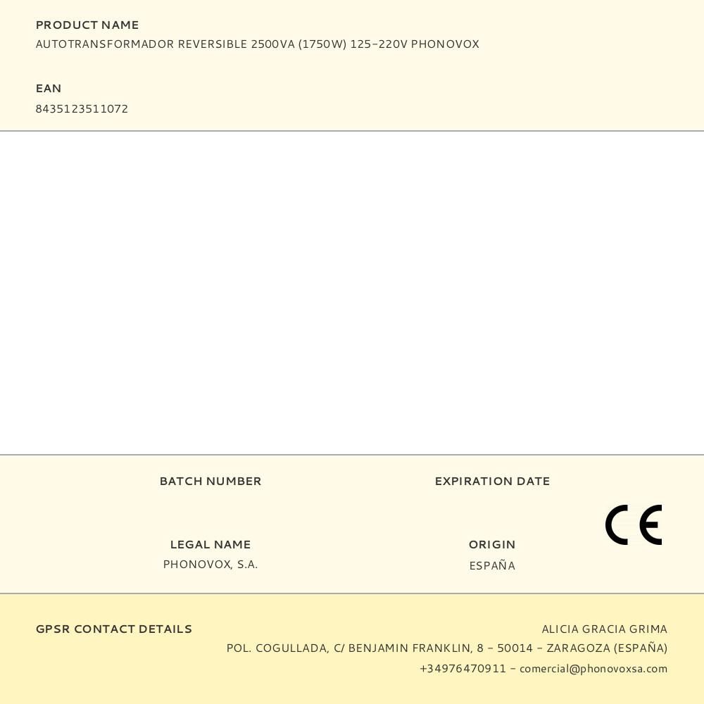 AUTOTRANSFORMADOR REVERSIBLE 2500VA (1750W) 125-220V PHONOVOX