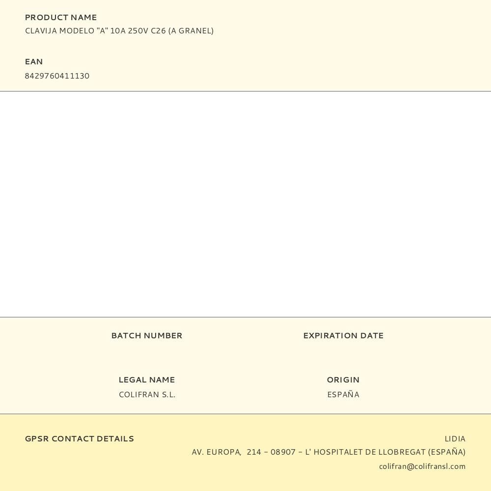 CLAVIJA MODELO "A" 10A 250V C26 (A GRANEL)