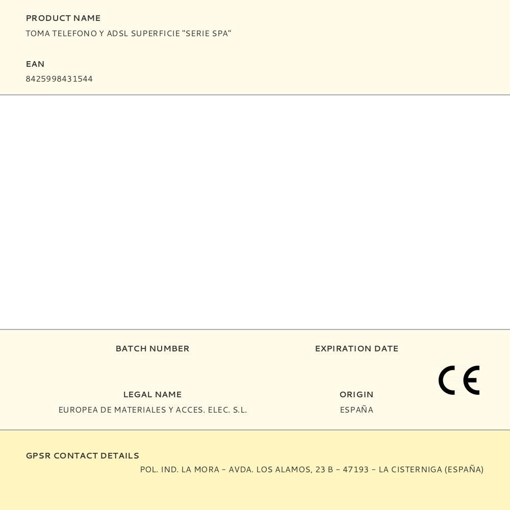TOMA TELEFONO Y ADSL SUPERFICIE "SERIE SPA
