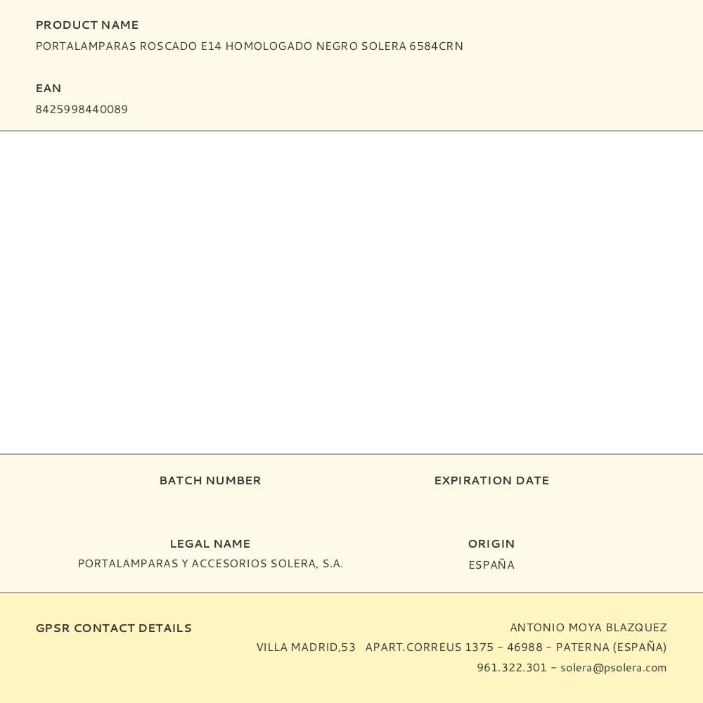 PORTALAMPARAS ROSCADO E14 HOMOLOGADO NEGRO SOLERA 6584CRN