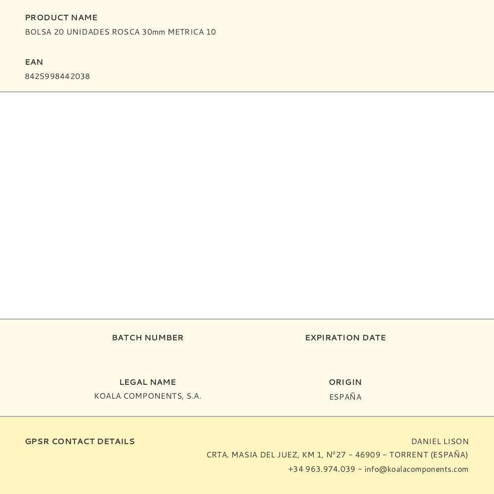 BOLSA 20 UNIDADES ROSCA 30mm METRICA 10