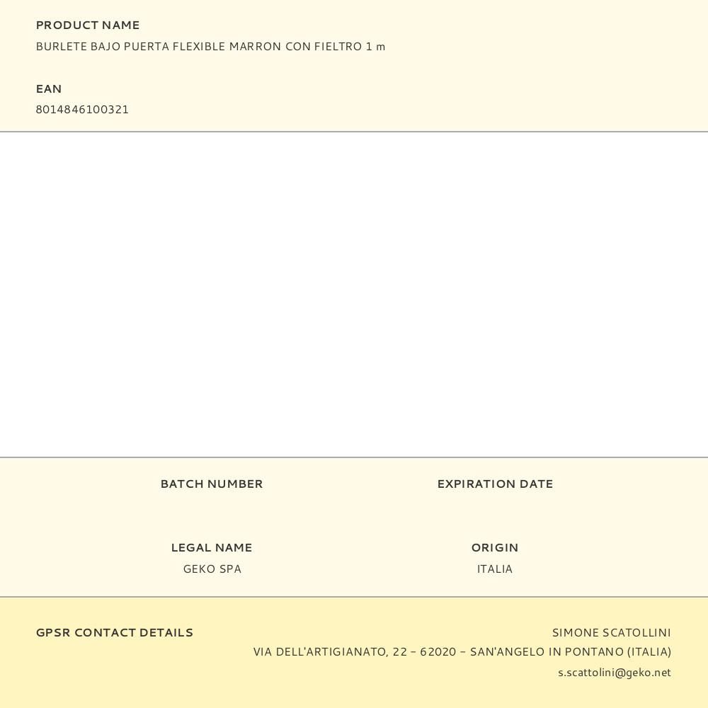 BURLETE BAJO PUERTA FLEXIBLE MARRON CON FIELTRO 1m PARA TODO TIPO DE PUERTAS