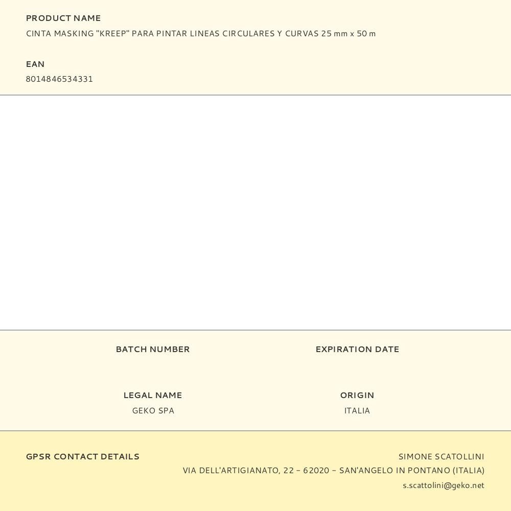 CINTA MASKING "KREEP" PARA PINTAR LINEAS CIRCULARES Y CURVAS 25 mm x 50 m
