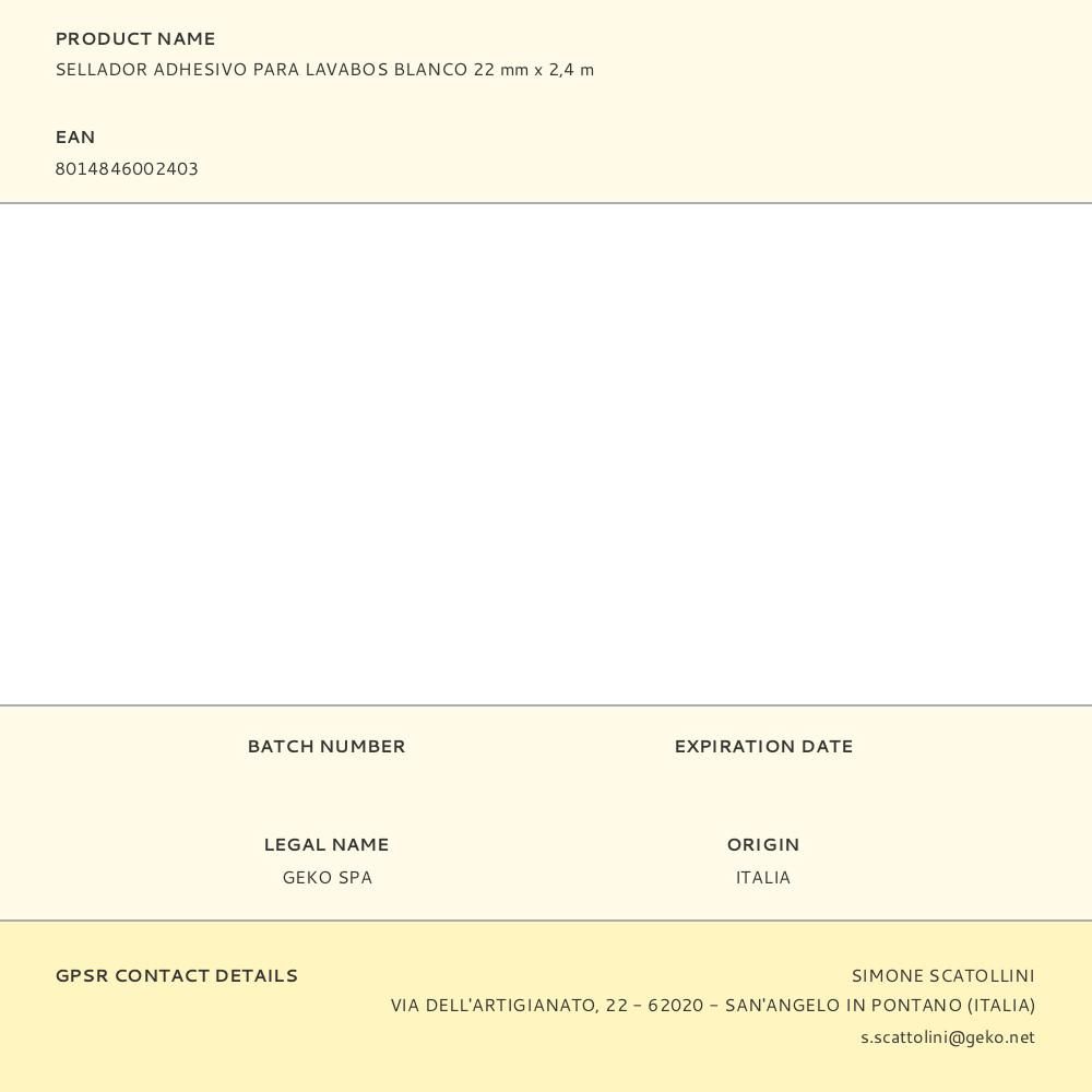 SELLADOR ADHESIVO PARA LAVABOS BLANCO 22 mm x 2,4 m