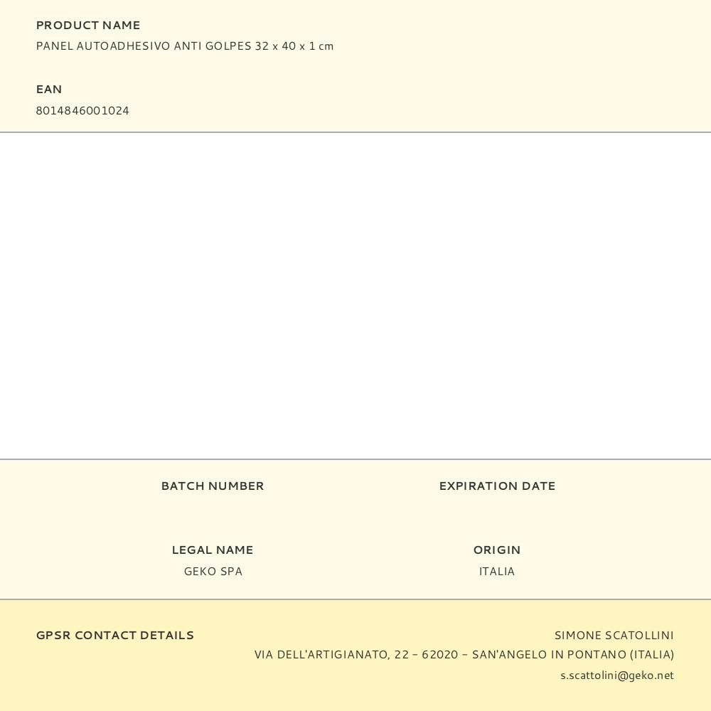 PANEL AUTOADHESIVO ANTI GOLPES 32 x 40 x 1 cm