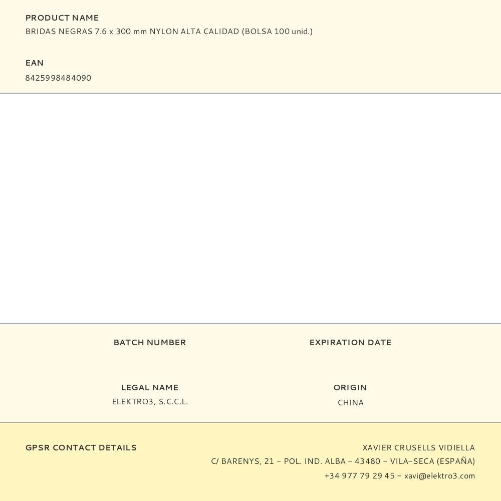 BRIDAS NEGRAS 7.6 x 300 mm NYLON ALTA CALIDAD (BOLSA 100 unid.)