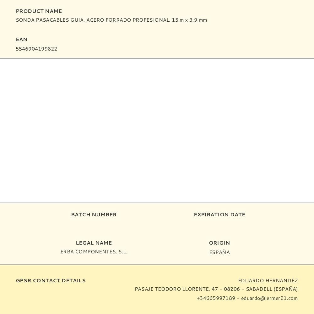 SONDA PASACABLES GUÍA, ACERO FORRADO PROFESIONAL, 15 m x 3,9 mm