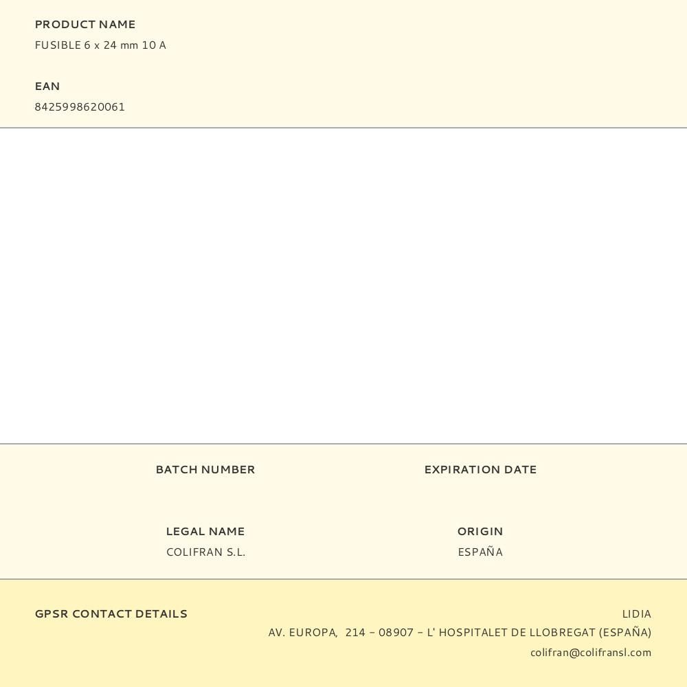 FUSIBLE PARA MICROONDAS 700 mA / 5 KV 6 x 2 mm