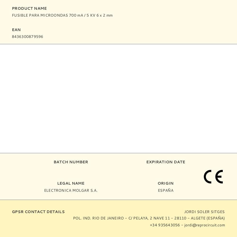 FUSIBLE PARA MICROONDAS 6x2mm 700mA/5KV