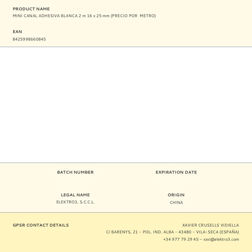 MINI CANAL ADHESIVA BLANCA 2 m 16 x 25 mm (PRECIO POR METRO)