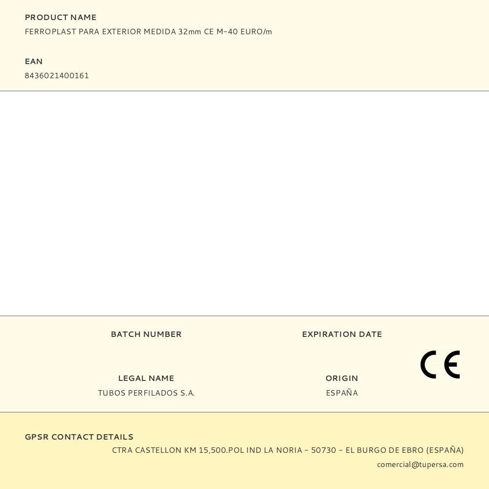 FERROPLAST PARA EXTERIOR MEDIDA INTERIOR 32mm CE MEDIDA EXTERIOR M-40 EURO/m