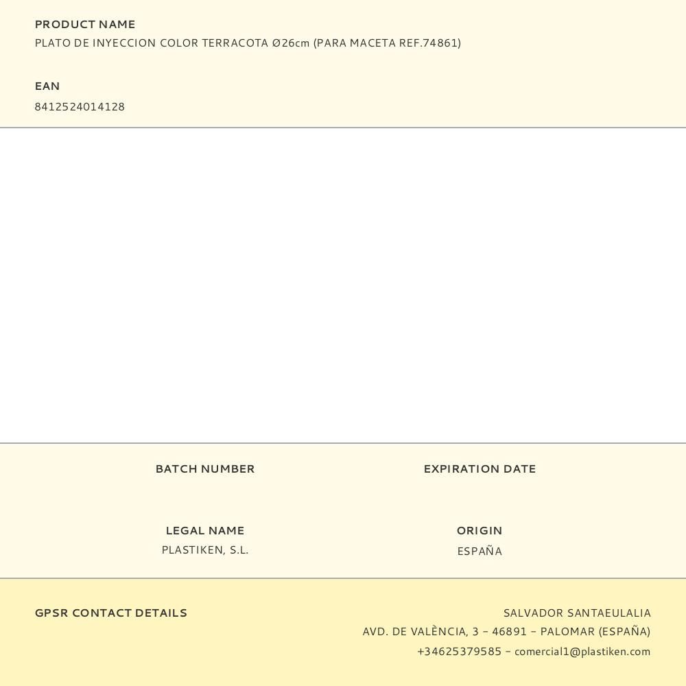 PLATO DE INYECCION COLOR TERRACOTA Ø26cm (PARA MACETA REF.74861)