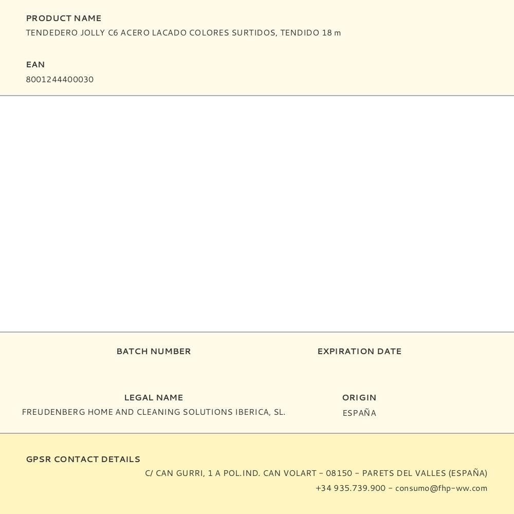 TENDEDERO JOLLY C6 ACERO LACADO COLORES SURTIDOS, TENDIDO 18 m