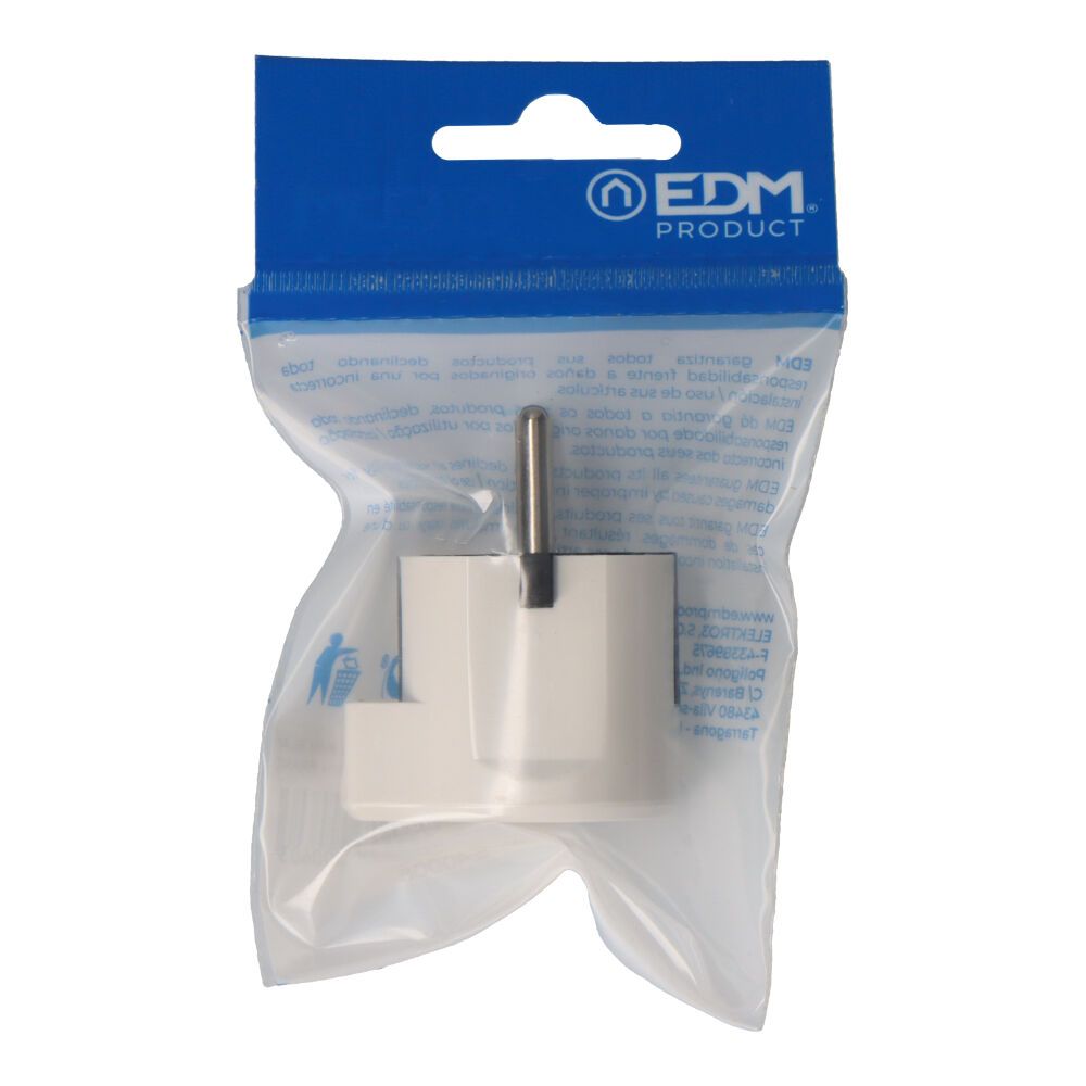 CLAVIJA TIPO F T/TL 16A SALIDA LATERAL 4,8mm BLANCA (ENVASADA)