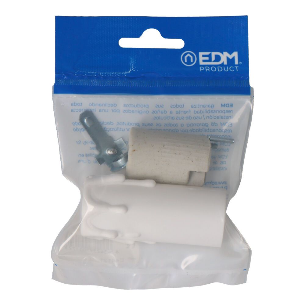PORTALÁMPARAS PORCELANA E14 4A 250V CON VELA CORTA BLANCA USO INTERIOR Y SALIDA DE CABLE FRONTAL 44120+44121 (ENVASADO)