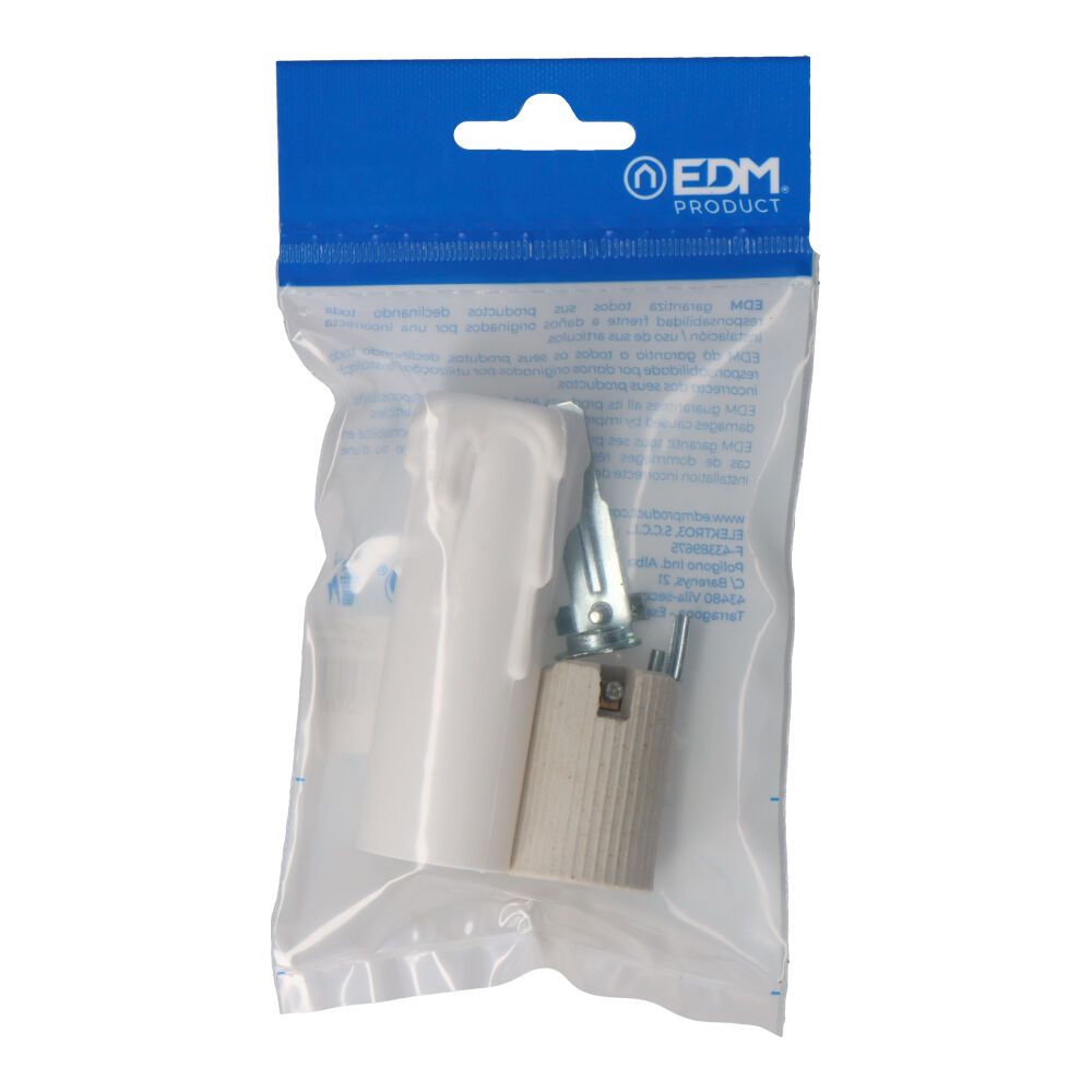 PORTALÁMPARAS E-14 PORCELANA 4A 250V CON VELA MEDIANA BLANCA USO INTERIOR Y SALIDA DE CABLE FRONTAL 44125+44126 (ENVASADO)