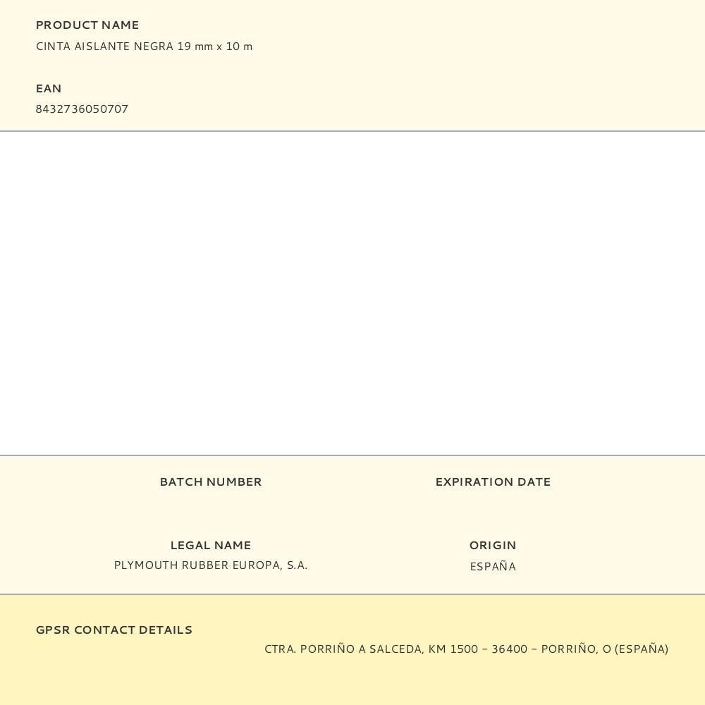 CINTA AISLANTE NEGRA 10 m x 19 mm x 0,15 mm