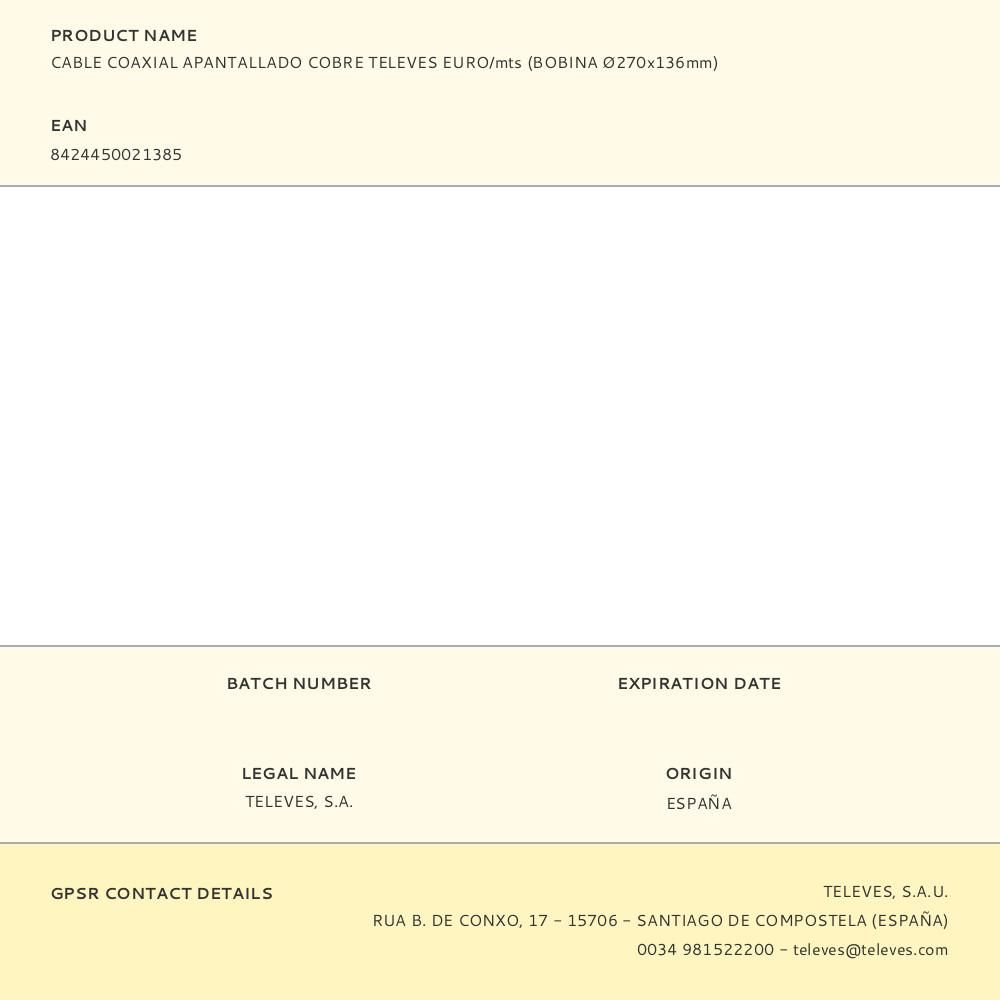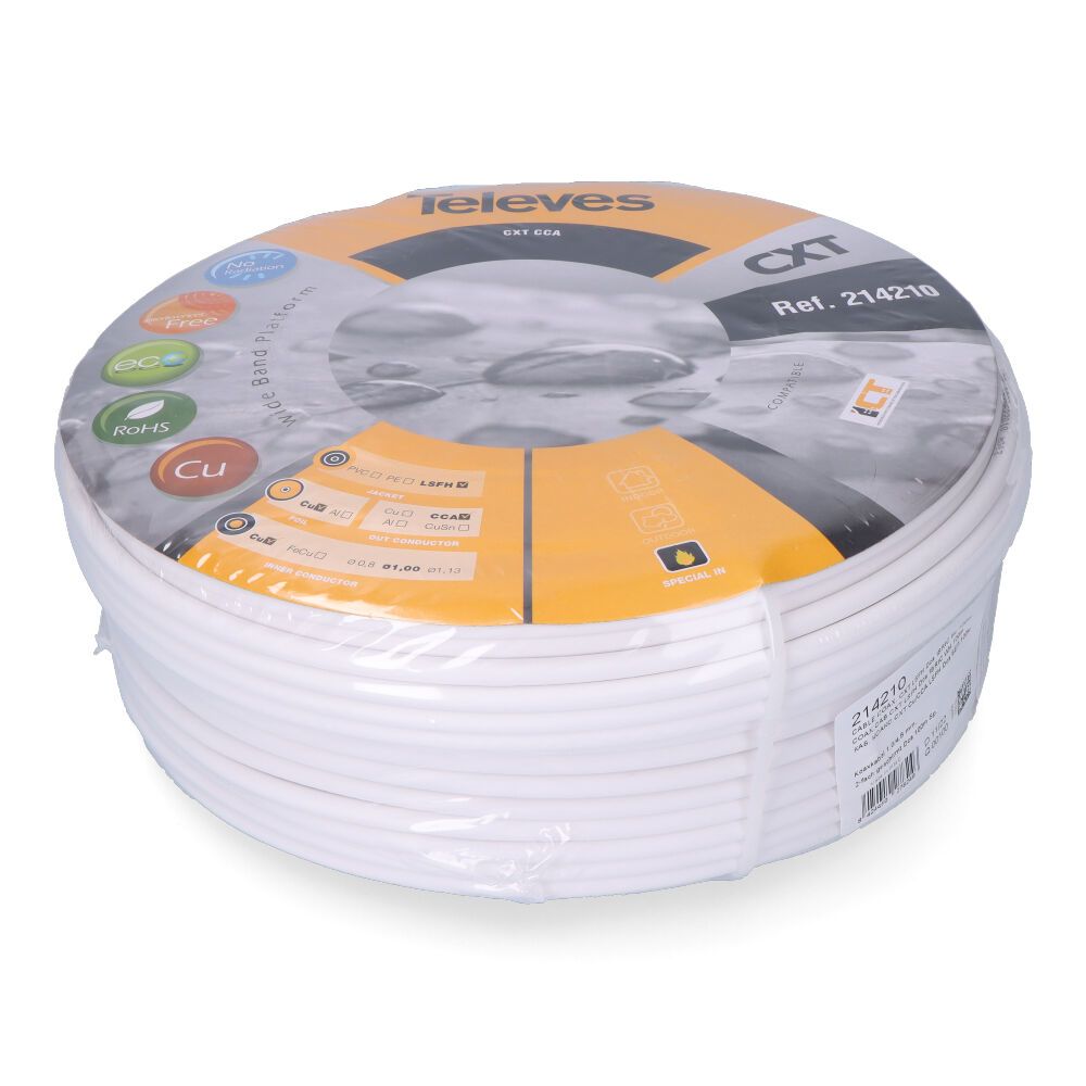 CABLE COAXIAL APANTALLADO, VIVO EN COBRE Y MALLA EN ALUMINIO COBREADO, EURO/m. CUMPLE CON LA NORMATIVA CPR DE LA ICT DCA