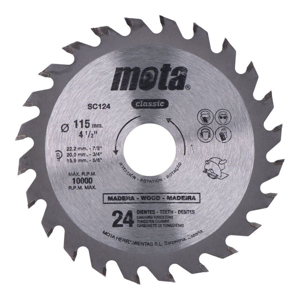 SIERRA CIRCULAR WIDIA Ø115 mm 24 DIENTES DE CARBURO TUNGSTENO. INCLUYE BUJES REDUCTORES PARA EJE