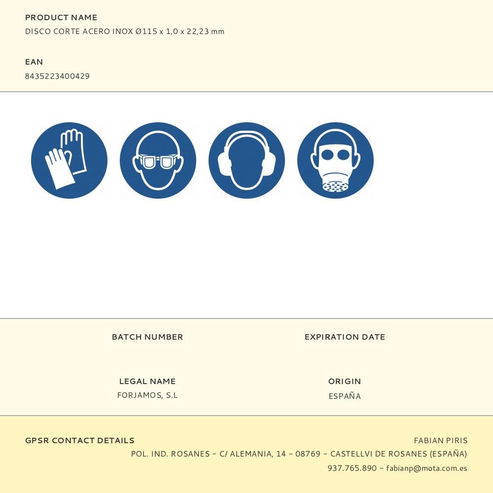 DISCO CORTE ACERO INOX Ø115 x 1,0 x 22,23 mm