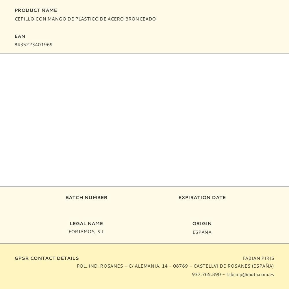 CEPILLO CON MANGO DE PLASTICO DE ACERO BRONCEADO