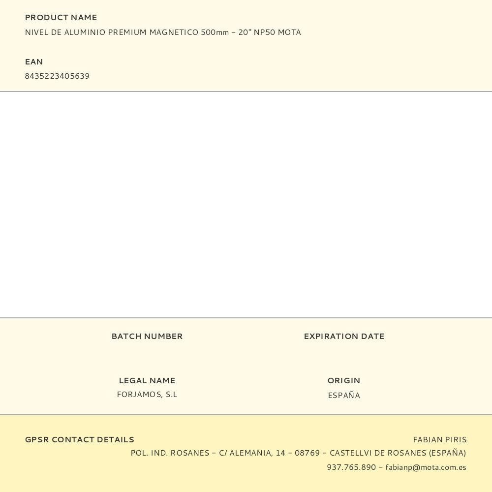 NIVEL DE ALUMINIO PREMIUM MAGNETICO 500 mm - 20 pulg