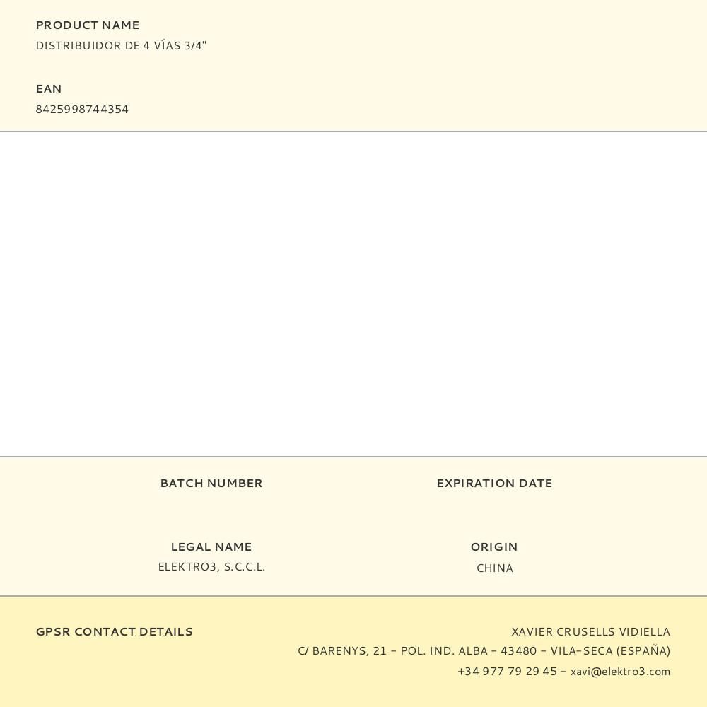 DISTRIBUIDOR DE 4 VÍAS CON VÁLVULAS PARA GRIFO DE ROSCA ¾ pulg