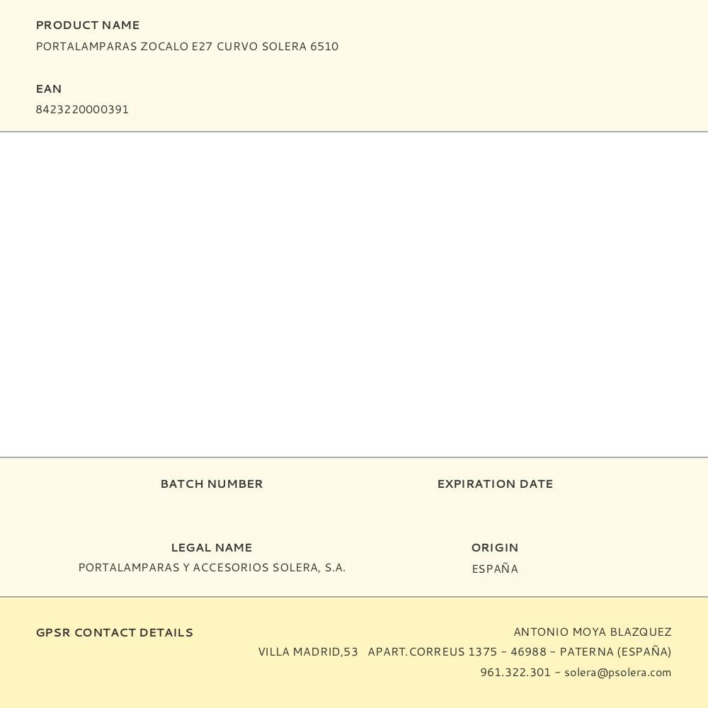 PORTALAMPARAS ZOCALO E27 CURVO SOLERA 6510