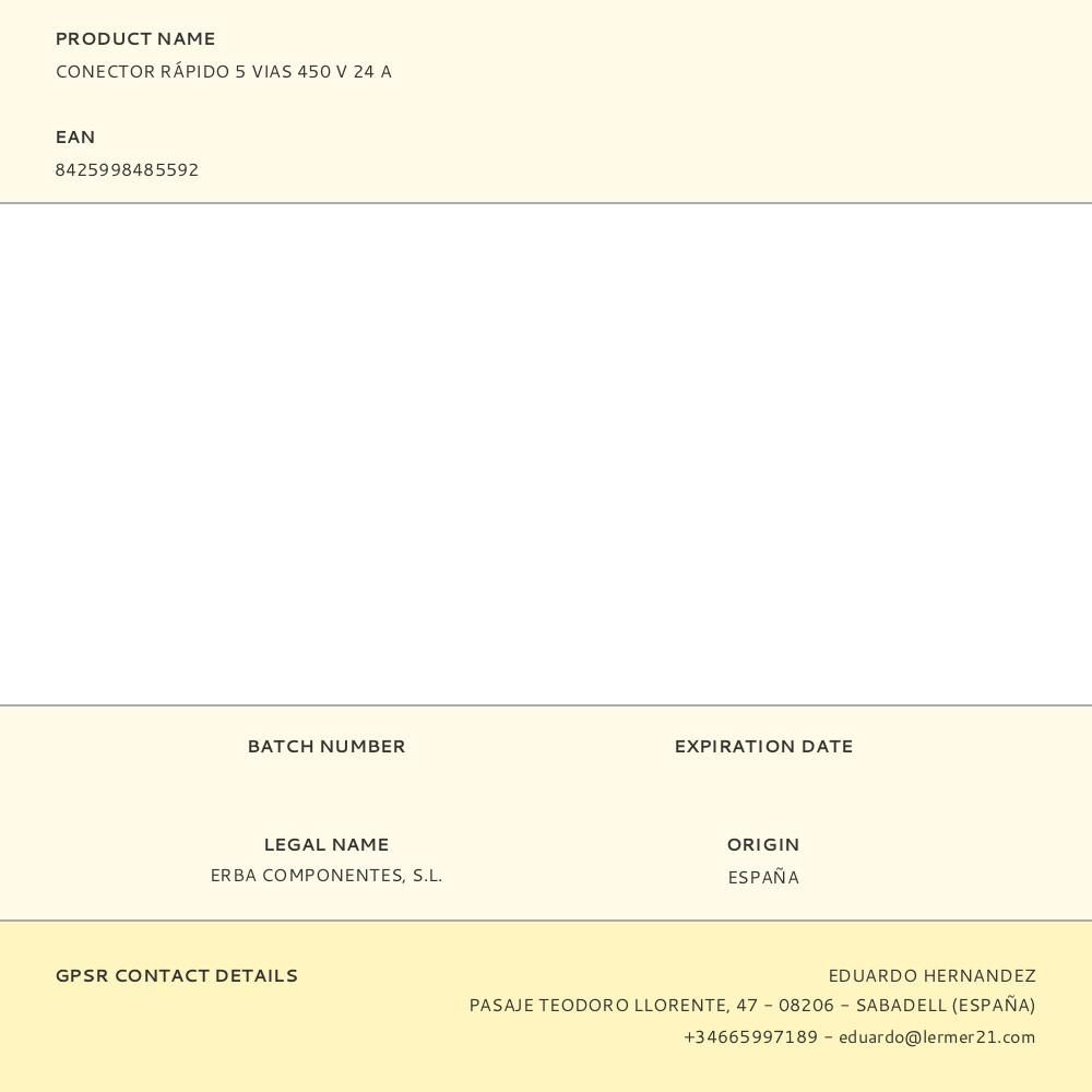 CONECTOR RAPIDO 5 VIAS 450V 24A