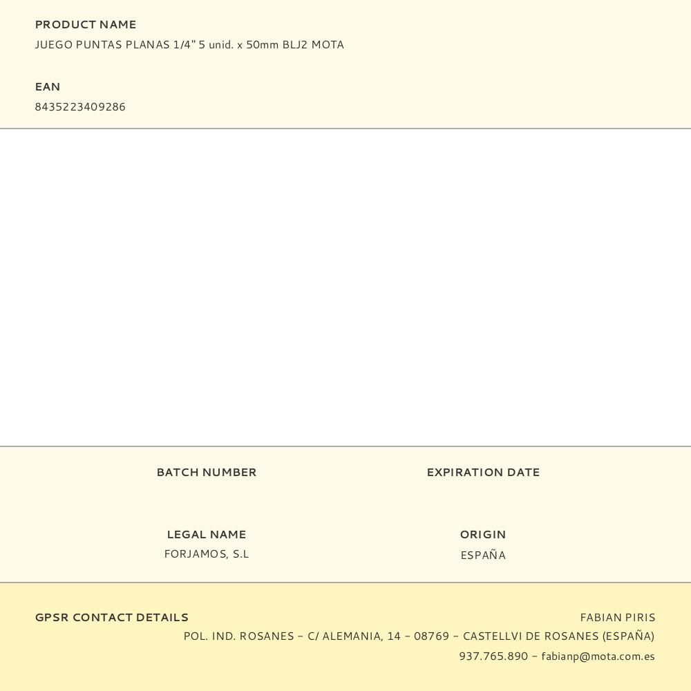 JUEGO PUNTAS PLANAS 1/4" 5 unid. x 50mm BLJ2 MOTA