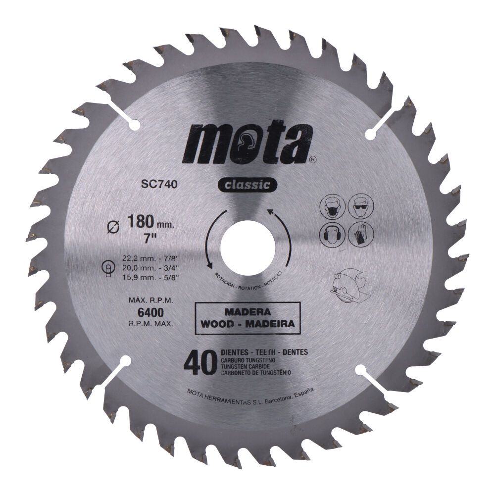 SIERRA CIRCULAR WIDIA Ø180 mm 40 DIENTES DE CARBURO TUNGSTENO. INCLUYE BUJES REDUCTORES PARA EJE
